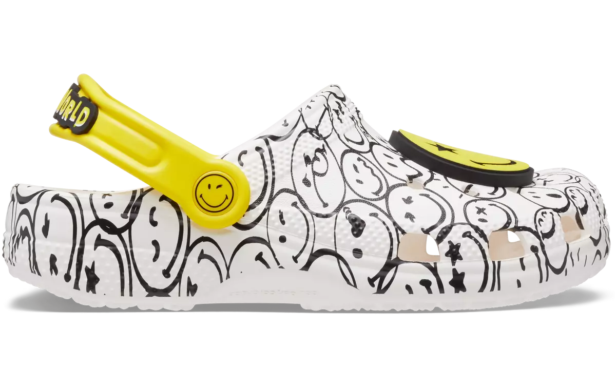 CROCS gyerek classic clog. Vidám smiley mintázattal, két nagy charmmal.