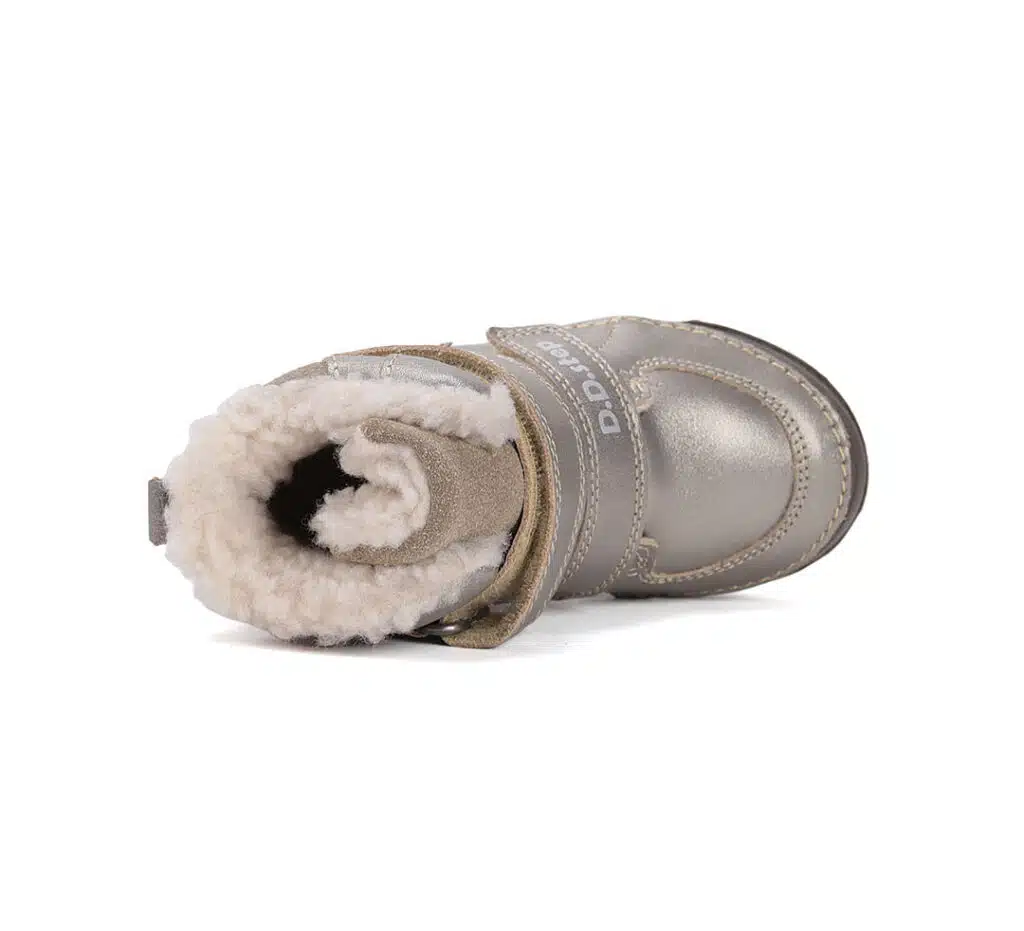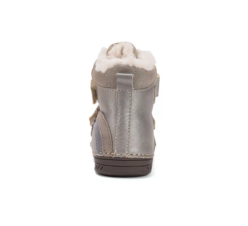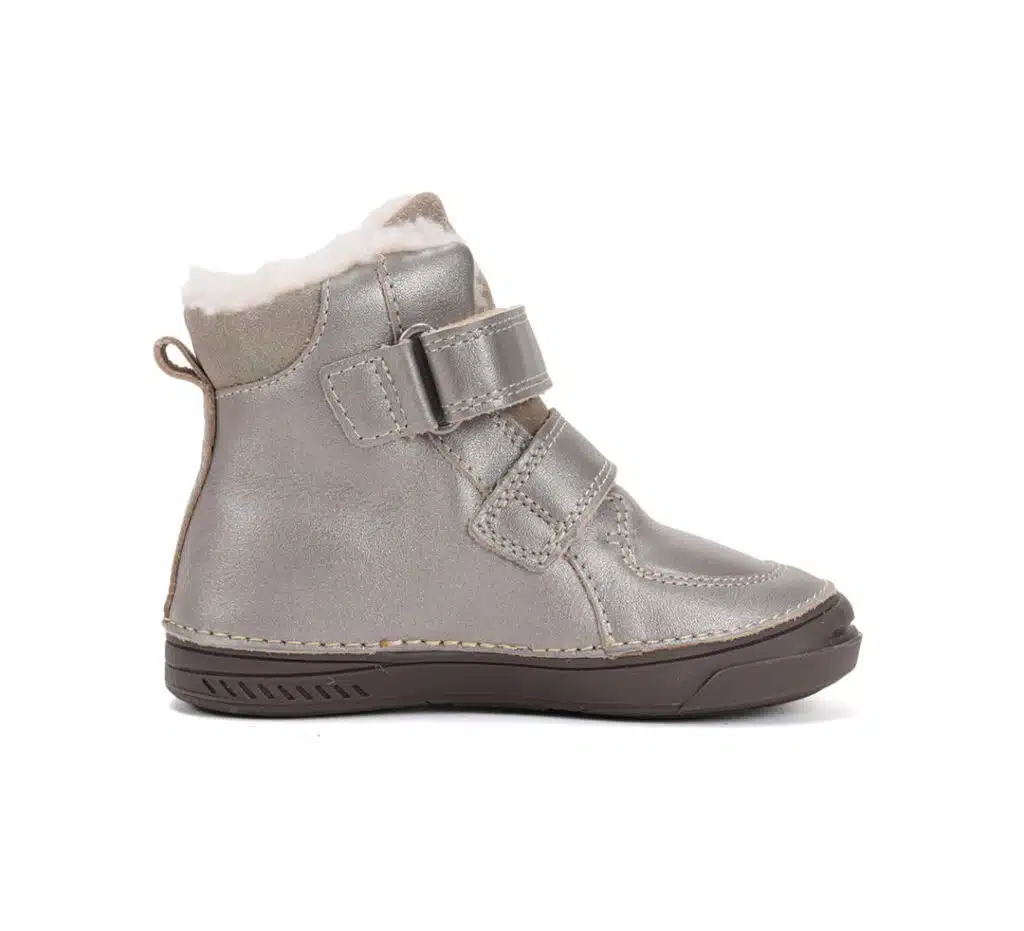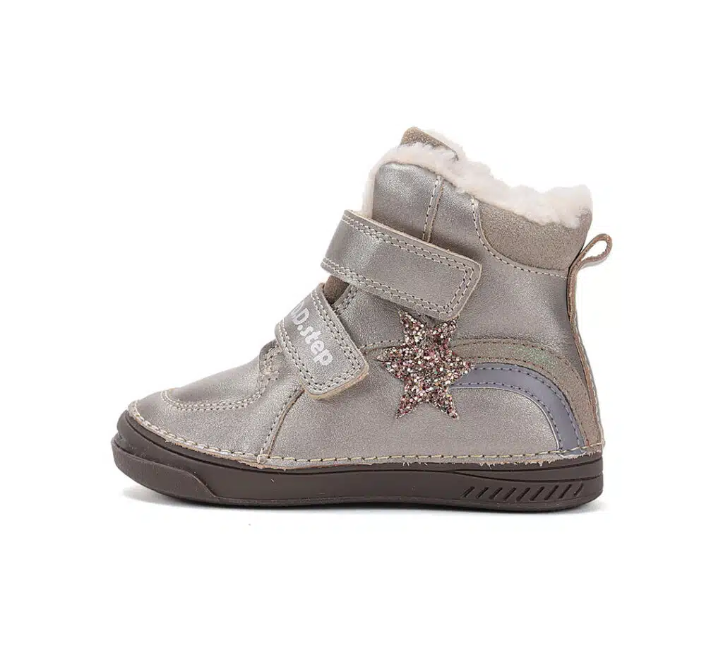 DD Step lány téli bőrcipő. Ez a valódi bőrből készült cipő nemcsak stílusos ezüstös színével hívja fel magára a figyelmet, hanem praktikus vízlepergető tulajdonságával is kihagyhatatlan választás a hideg hónapokra. Az oldalán található díszítés elegáns megjelenést biztosít, miközben a cipő meleg bélése garantálja, hogy a kis lábak mindig komfortosan érezzék magukat, bármilyen időjárás is uralkodjon odakint.