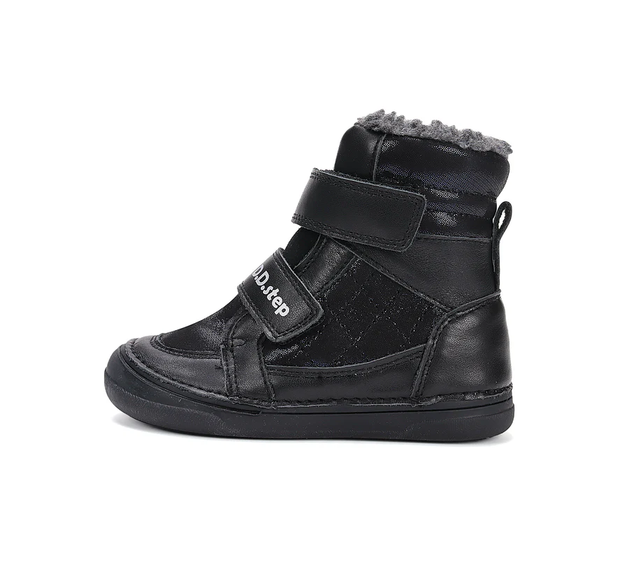 DD Step lány téli bakancs. Kívül bőr, belül bunda béléssel. Fekete színben. Megerősített kéreggel és orrvédelemmel ellátva.