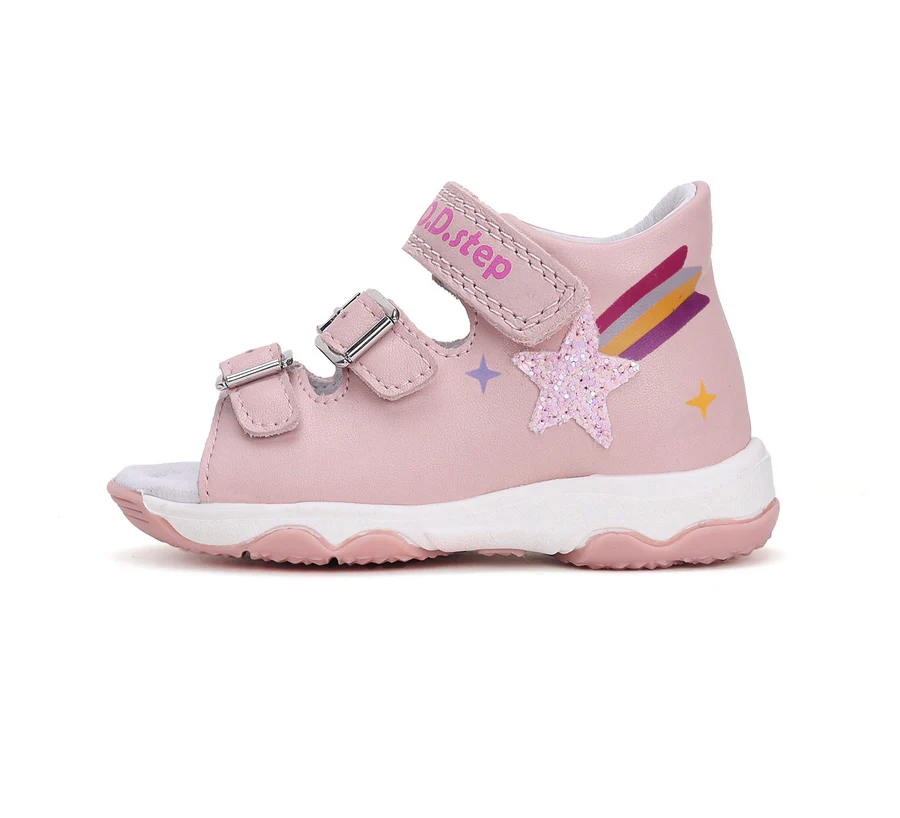 DD Step bőrszandál, ami nemcsak kényelmes, de varázslatos is! A napfény hatására színesedő szivárvány minta igazi vidámságot visz a gyerekek mindennapjaiba. Remek választás kalandokhoz, óvodába váltó szandinak, játszótérre vagy családi kirándulásokhoz.