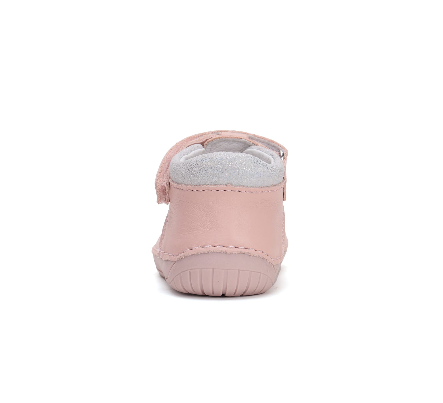 DD Step „mezítlábas” nyitott bőrcipő. Rózsaszín színben, unikornis mintával. Extra könnyű és hajlékony. Egy tépőzárral szabályozható.