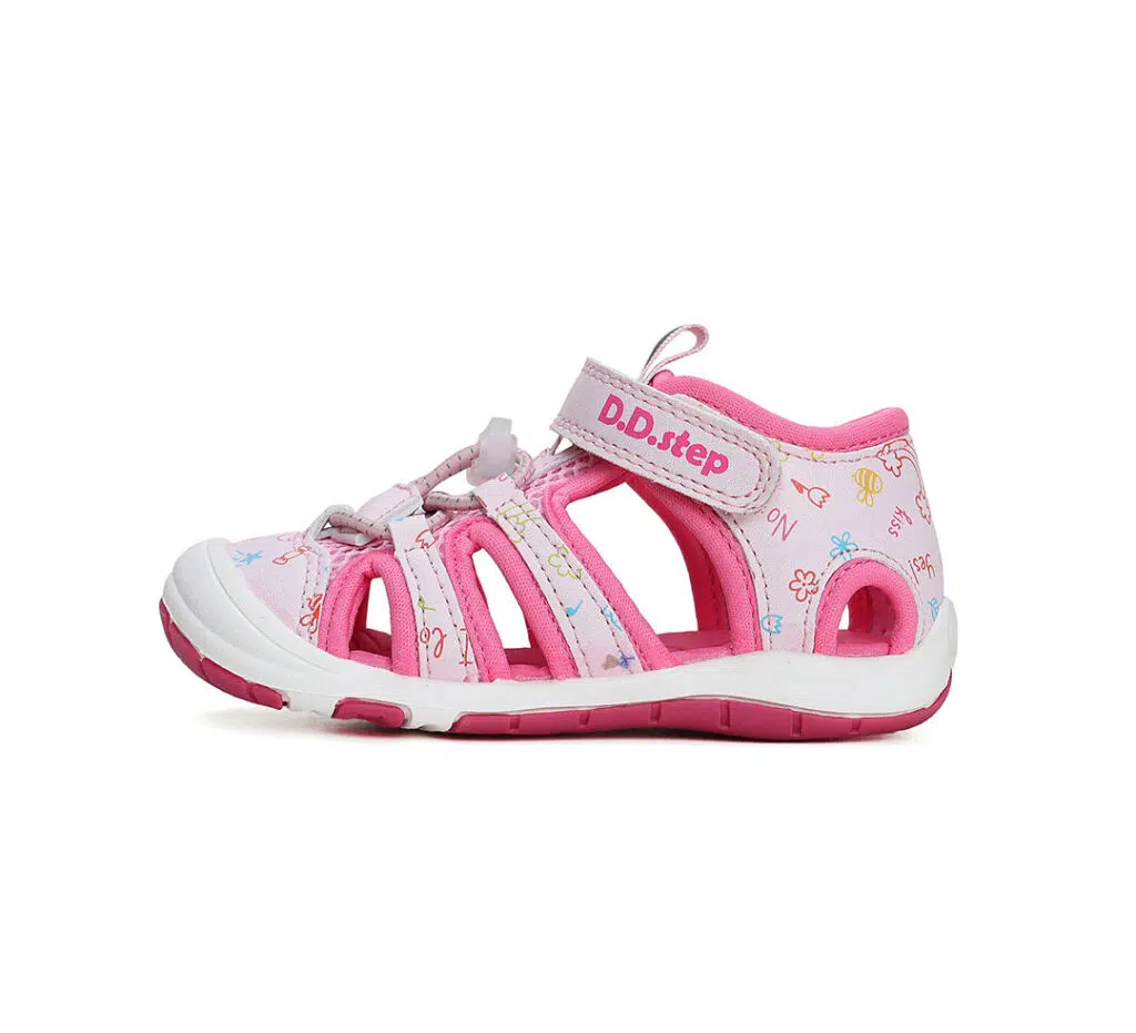 A DD Step rózsaszín sportszandál gyorsan száradó, könnyű és rugalmas anyagból készült, így ideális választás sportoláshoz, játszótérre vagy vízparti kalandokhoz. Kialakítása jól szellőzik, miközben a zárt orr védi a lábujjakat. A tépőzáras pánt segítségével könnyen a gyermek lábára állítható, stabil és kényelmes viseletet biztosítva. Kifejezetten praktikus nyári lábbeli aktív gyerekek számára.