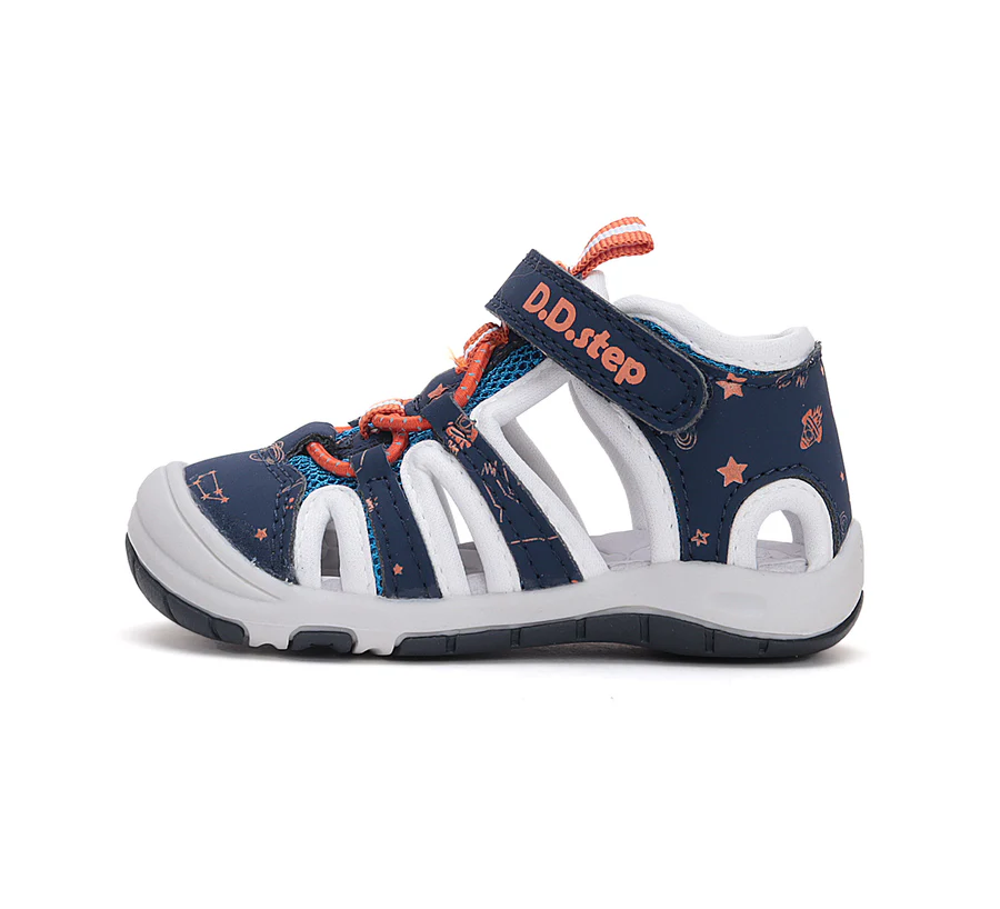 DD Step gyorsan száradó sport szandál. Kék színben. Ideális választás „vizezős” játszó szandálnak. Zárt orral és sarokrésszel.
