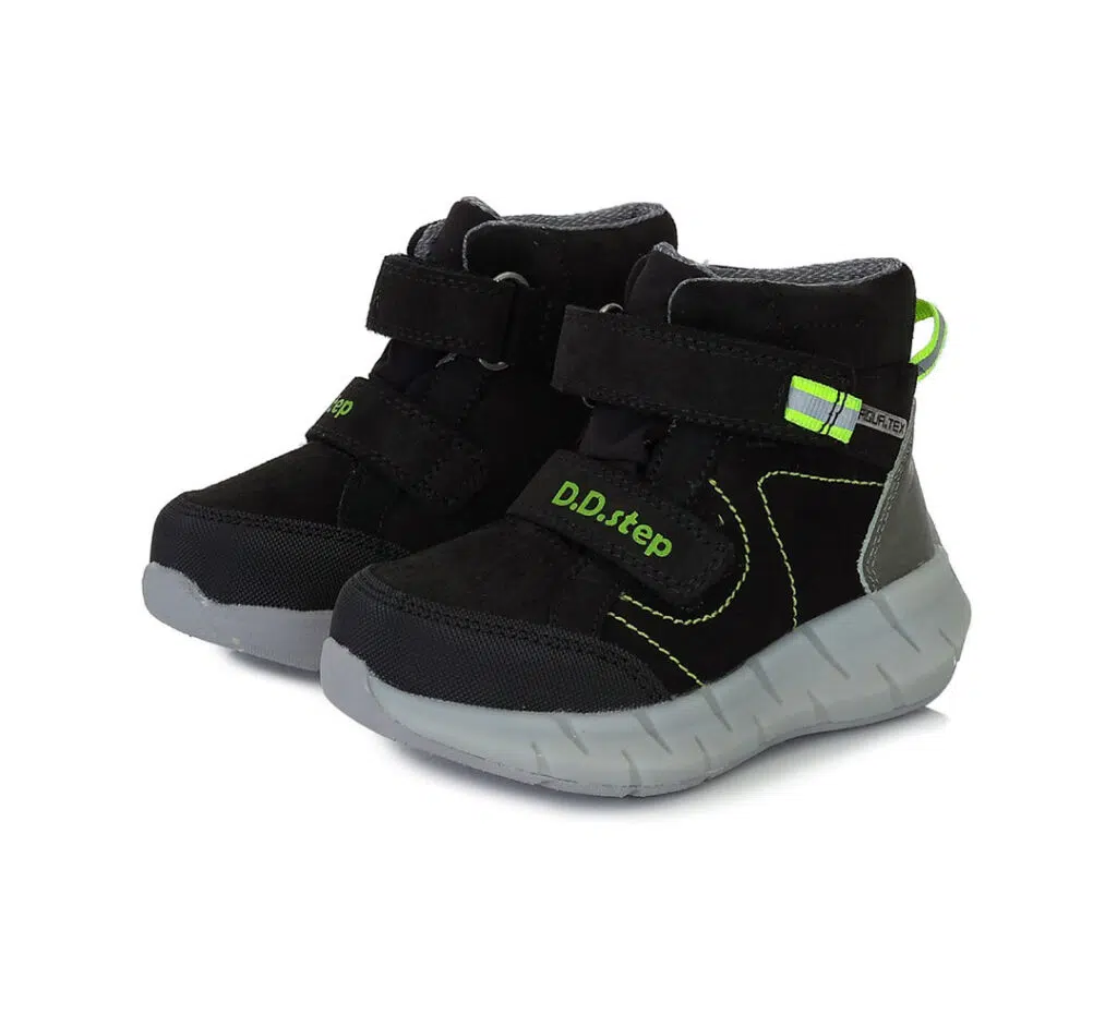 DD Step vízálló átmeneti fiú cipő. Bőr felsőrésszel készült, könnyű, flexibilis cipő. Megerősített kéreggel, két tépőzárral szabályozható.