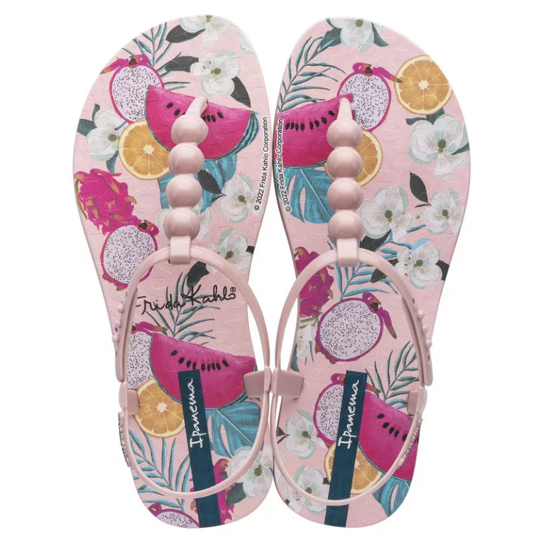 Stílusos Ipanema Class Frida Kahlo női szandál állítható bokapánttal. Kényelmes lapos talpú női szandál divatos rózsaszín színben. Rendkívül vidám mintája a nyár vidám hangulatát tükrözi.