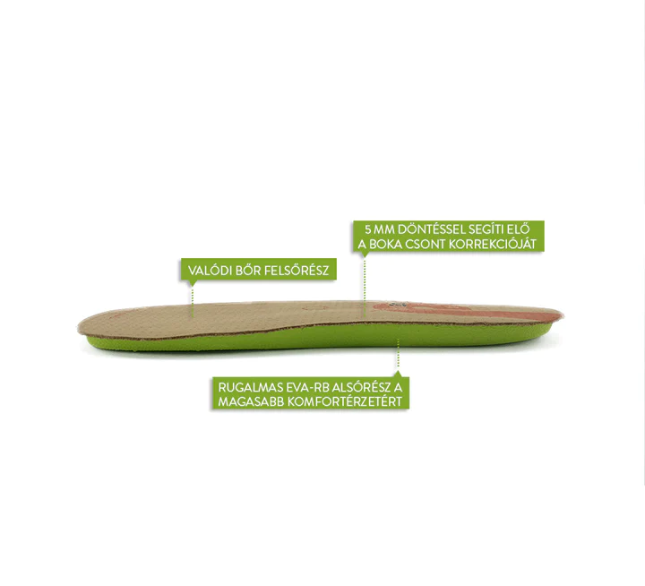 5 mm döntéssel segíti elő a boka csont korrekcióját, ezzel megelőzhető a gerincferdülés, a térdszalagok feszülése, sérülése.