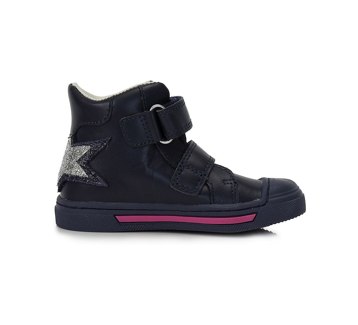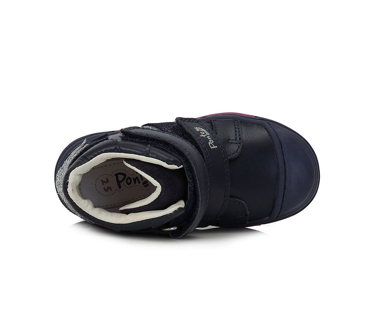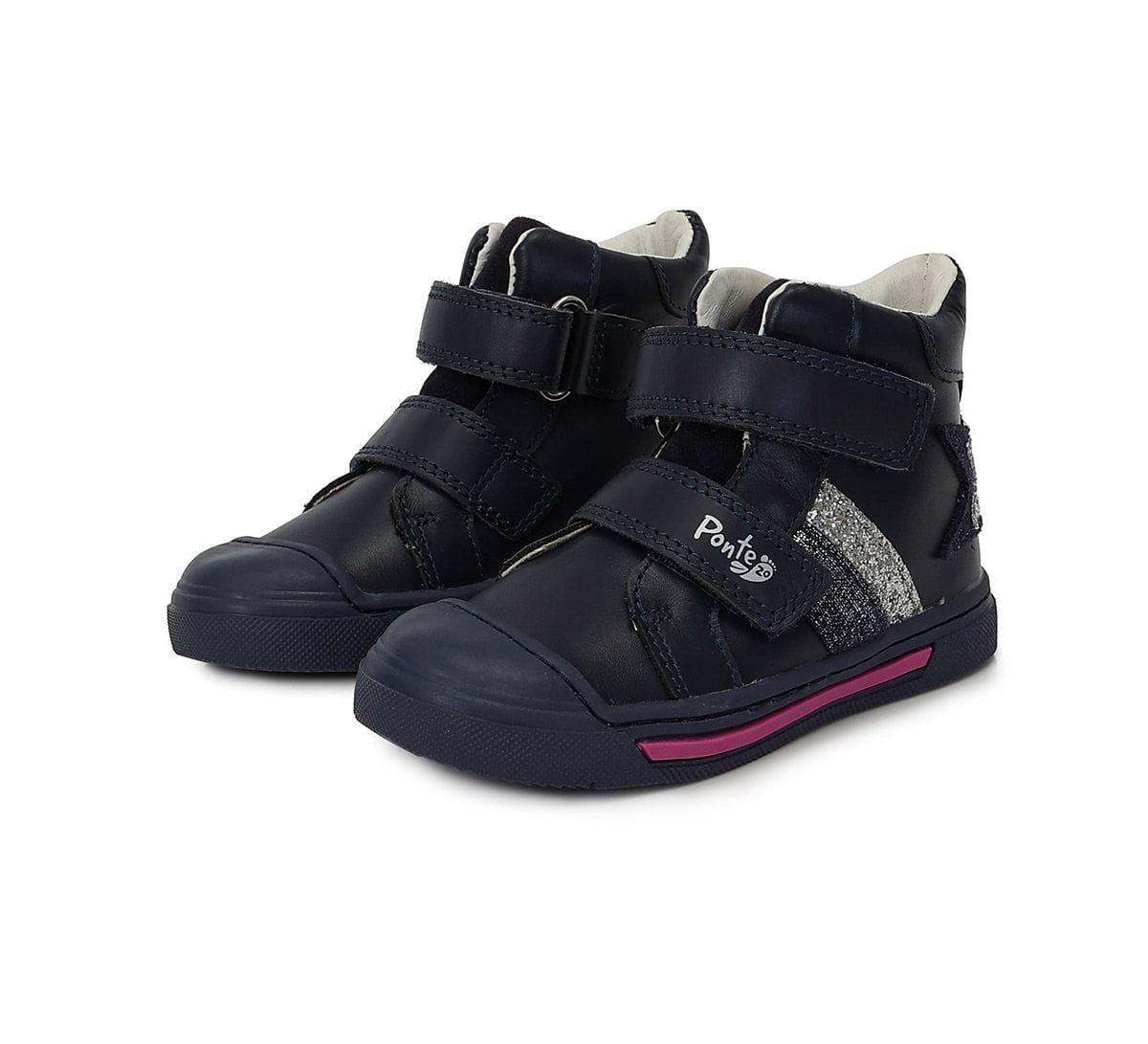 A Ponte20 szupinált lány bőrcipő sötétkék színben, ezüst csillag díszítéssel stílusos és stabil választás a mindennapokra. A szupinált sarokkialakítás segíti a boka megfelelő tartását, támogatva a helyes lábállást.