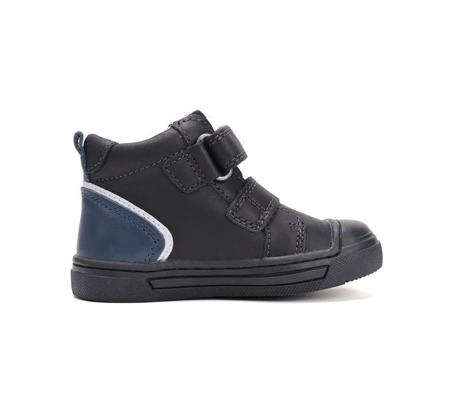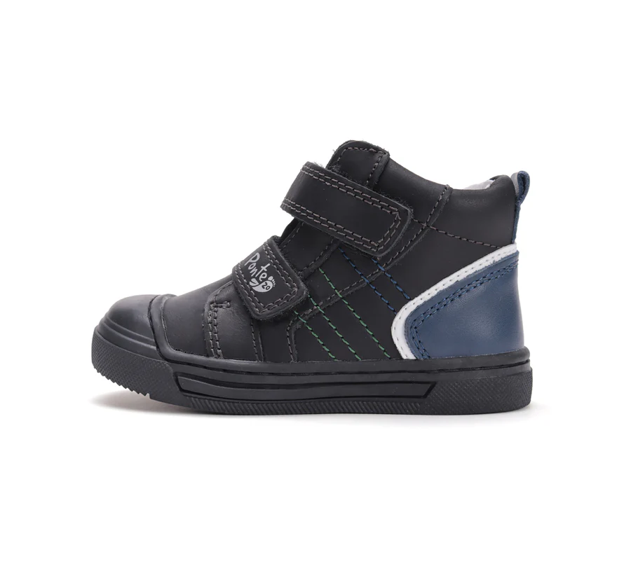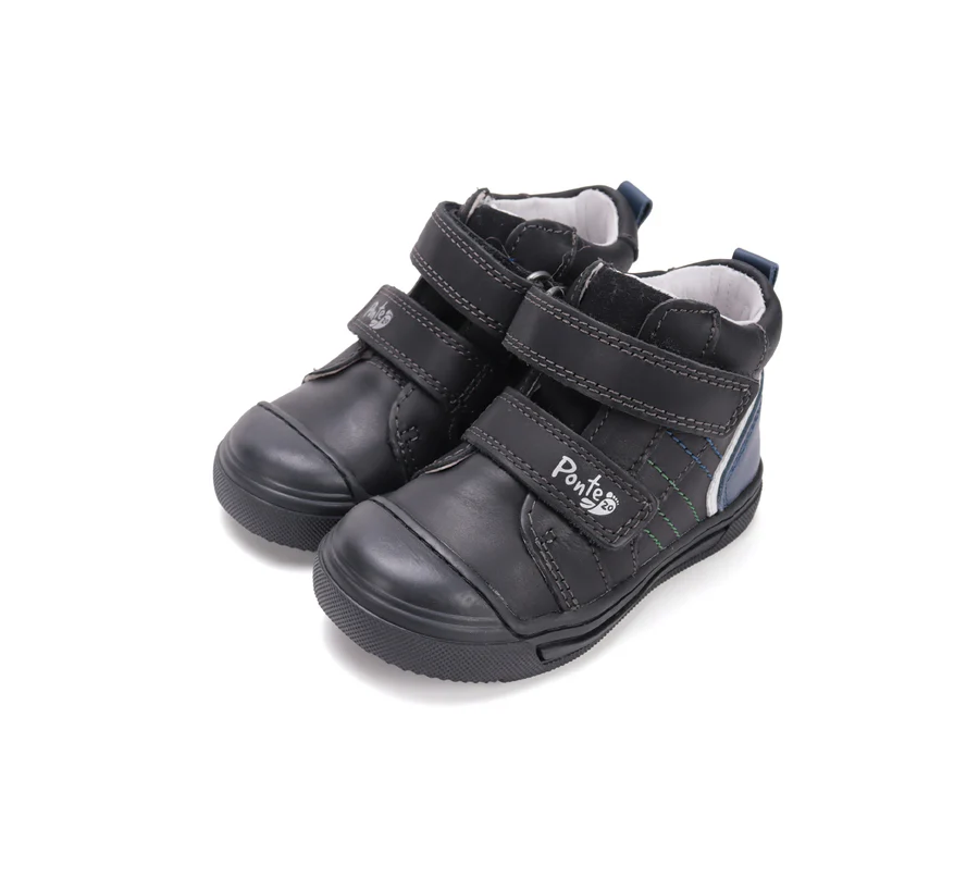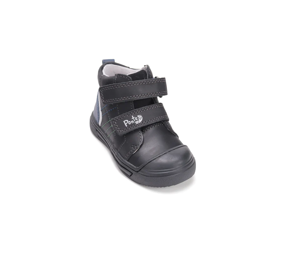 Ponte20 szupinált magas szárú bőrcipő, fekete kék színben. Megerősített kéreggel és orrvédelemmel ellátva. Két tépőzárral szabályozható.
