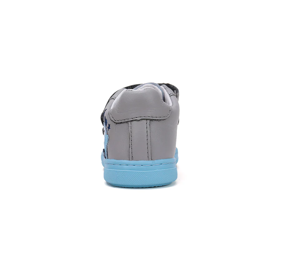 Ponte20 szupinált fiú bőrcipő. Világoskék színben, oldalán szörnyecske mintával. Megerősített kéreggel és orrvédelemmel ellátva.