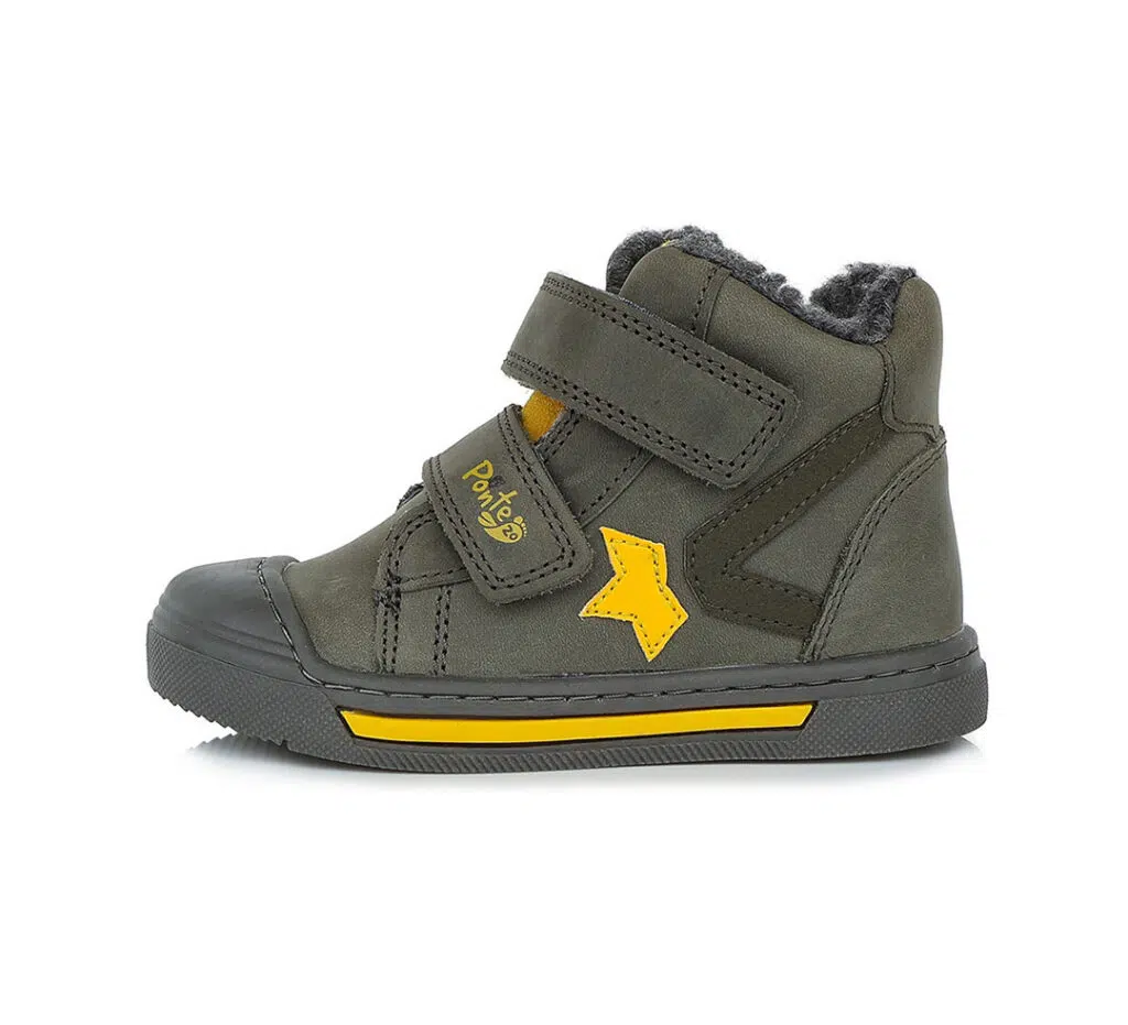 Ponte20 szupinált téli bőrcipő szürke színben, oldalán csillag mintával. Kívül bőr, belül bunda béléssel. Megerősített kéreggel és orrvédelemmel ellátva.