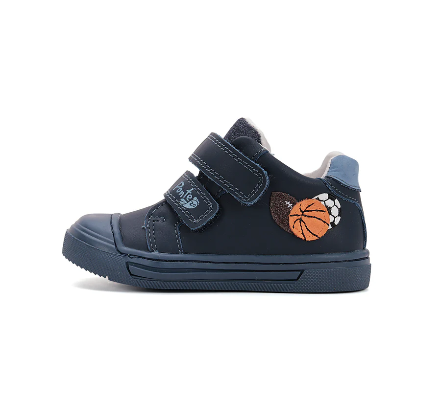 Ponte20 szupinált fiú bőrcipő királykék színben, oldalán labda mintával. Megerősített kéreggel és orrvédelemmel ellátva. Két tépőzárral könnyen a lábra igazítható. Hajlékony talpa csúszásmentes.