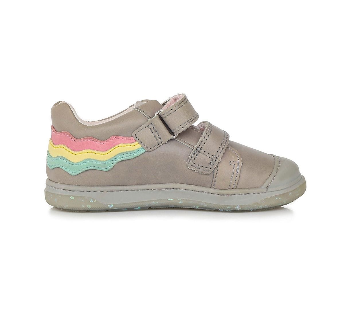 A Ponte20 szupinált lány bőrcipő szürke színben, vidám színes hullámmintával modern és kényelmes választás a mindennapokra. A szupinált sarokkialakítás segíti a boka megfelelő tartását, támogatva a helyes lábállást.