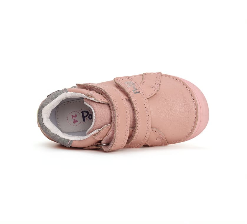 A Ponte20 szupinált lány bőrcipő rózsaszín színben, virágos sarokdísszel igazán bájos megjelenést ad. A szupinált sarokkialakítás segíti a boka megfelelő tartását, támogatva a helyes lábállást.