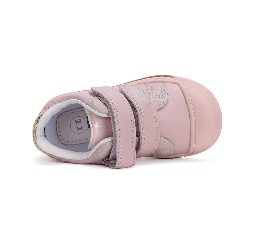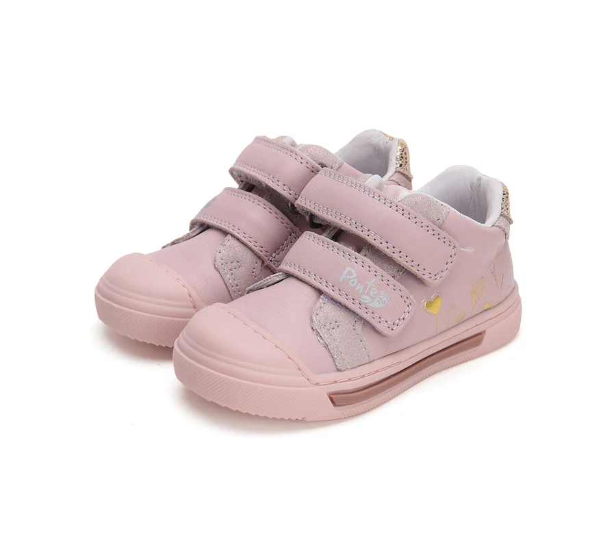 A Ponte20 rózsaszín szupinált lány cipő arany szívecskés mintával elegáns és kényelmes választás. A szupinált sarokkialakítás támogatja a boka stabilitását.