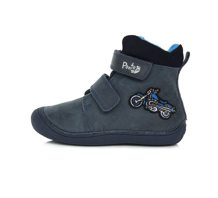Ponte20 szupinált téli bőrcipő, királykék színben, oldalán motor mintával.