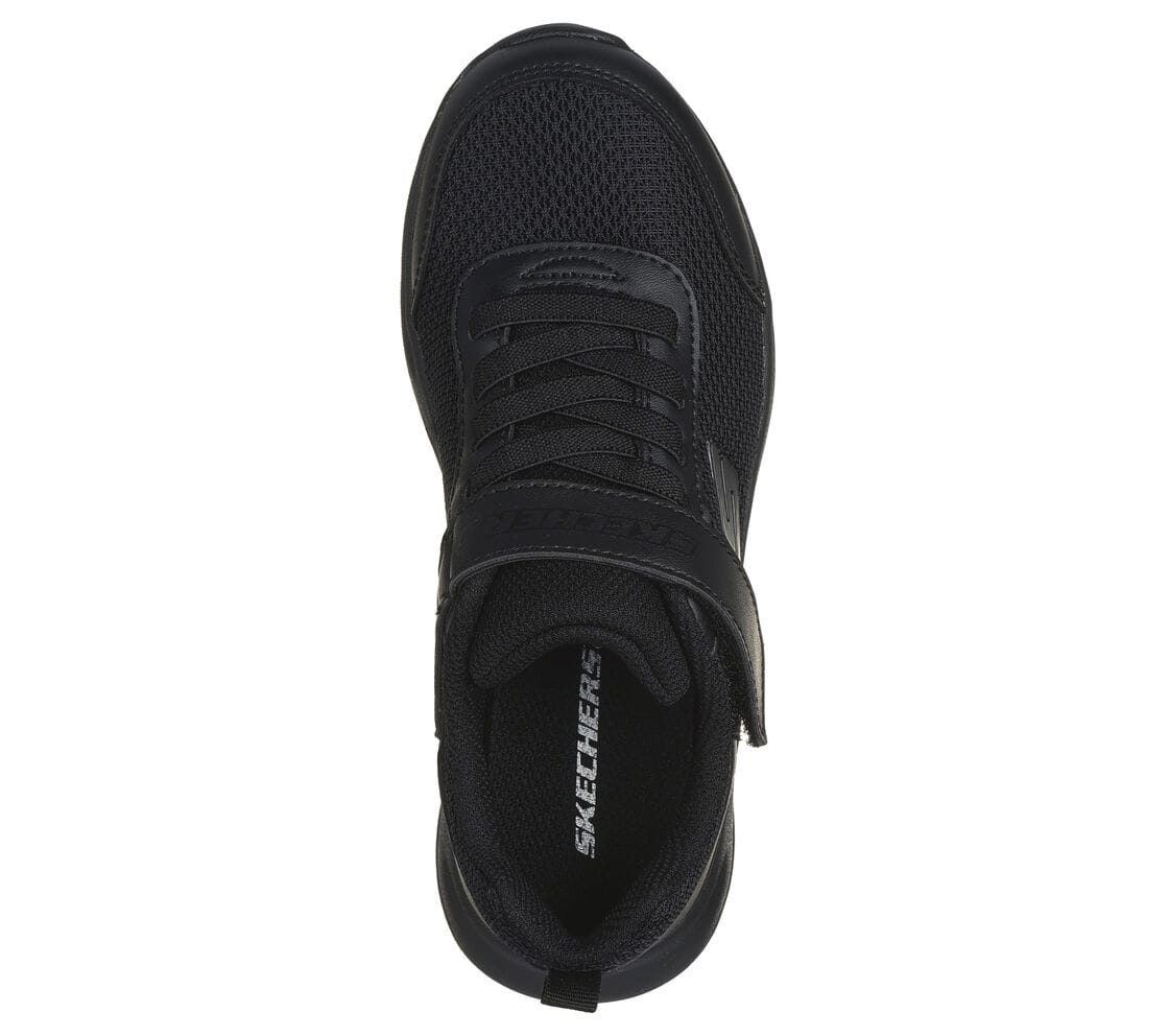 Skechers ® sportos, könnyű modell. Fekete, egyszínű hálós és szintetikus felsőrésszel, rugalmas fűzővel, tépőzárral, ütéscsillapító középtalppal és párnázott, kényelmes talpbetéttel készült.