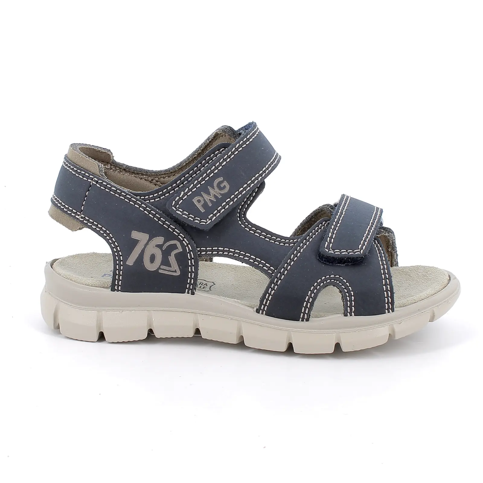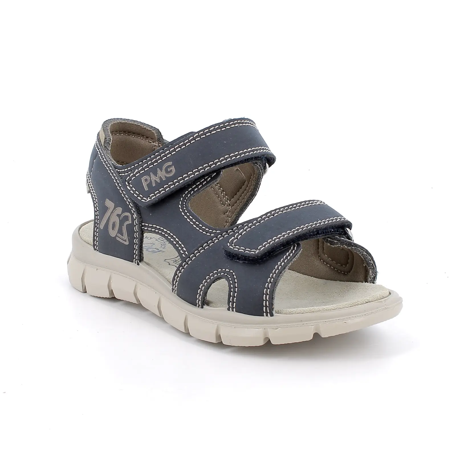 Primigi nyitott kérgű, nyitott orrú fiú bőrszandál kék színben, letisztult megjelenéssel.