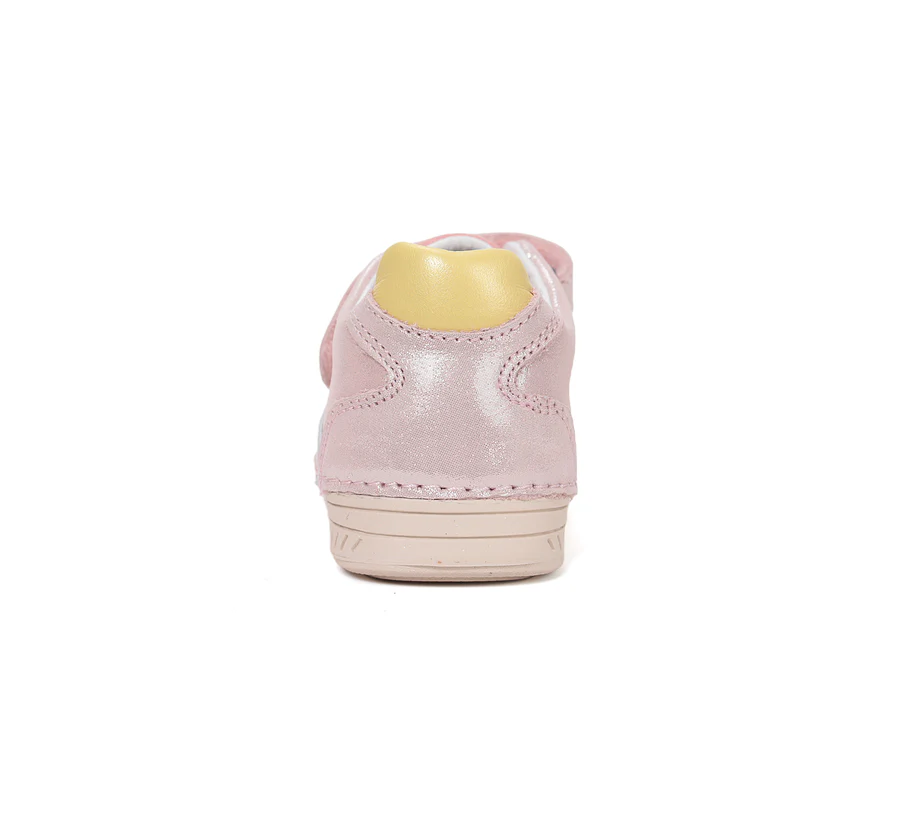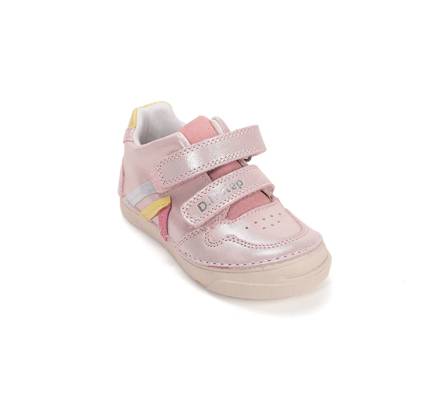 Csillámló rózsaszín DD Step lány bőr cipő, amely stílusos és kényelmes választás a mindennapokra. A két tépőzárnak köszönhetően könnyen felvehető, miközben stabil tartást biztosít a gyerekek lábának. Kívül-belül valódi bőrből készült.